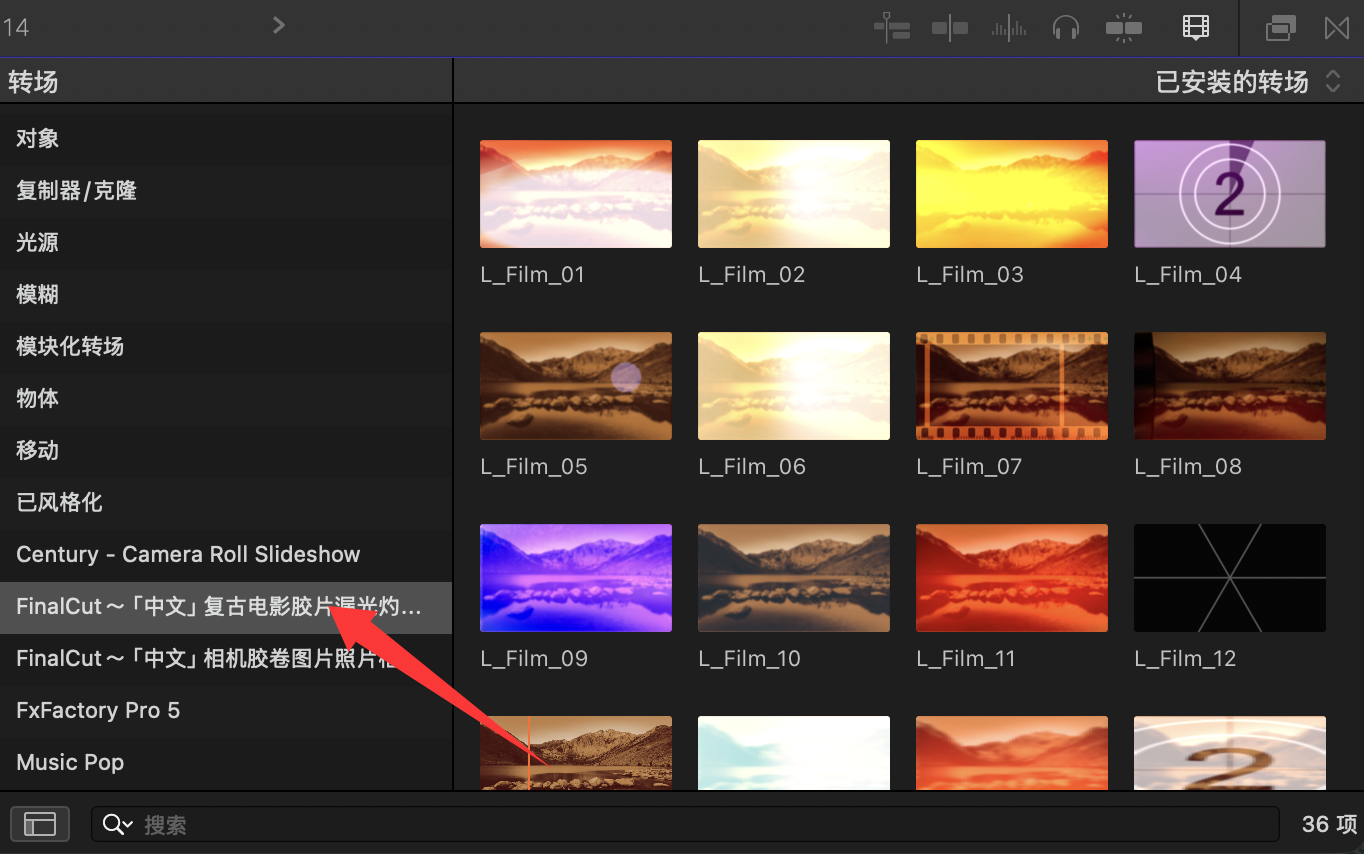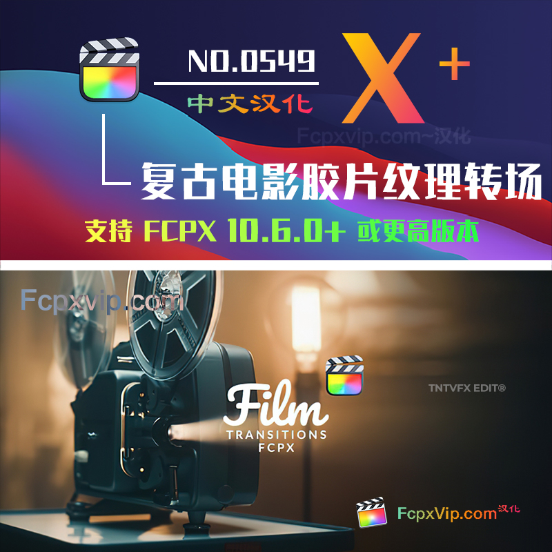 Final Cut Pro中文FCPX插件:复古老电影胶片漏光灼烧颗粒纹理扫光划痕转场效果 Film Transitions HQ0549