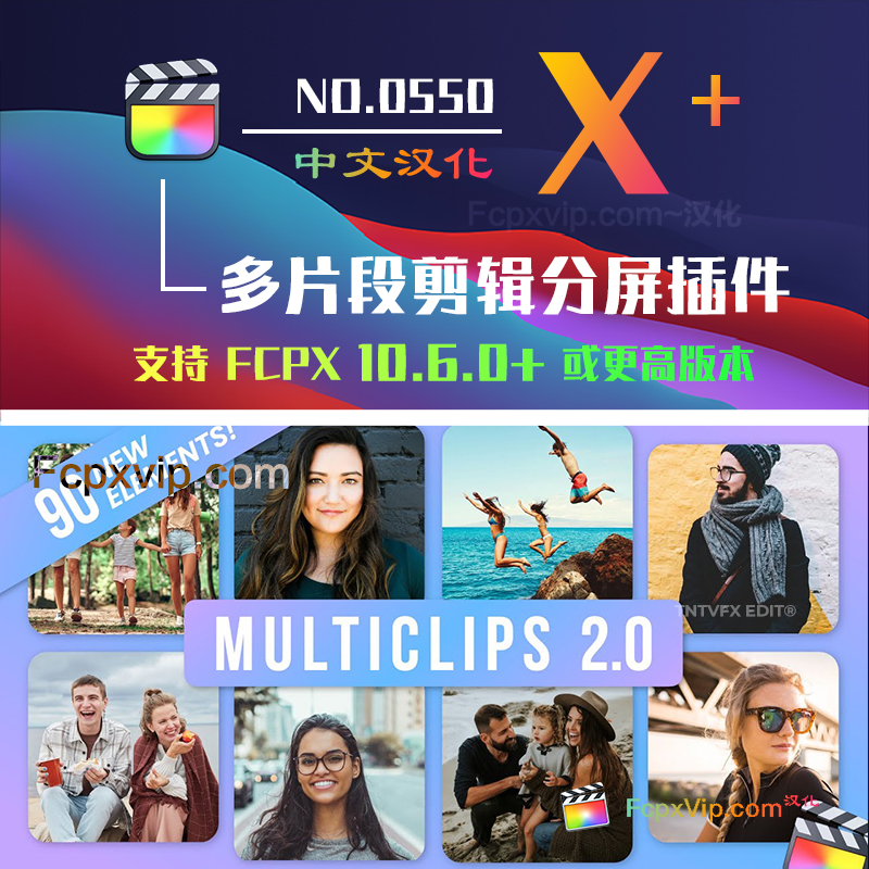 Final Cut Pro中文FCPX插件:181款多片段剪辑元素屏幕控件自定义分屏插件 Multiclips HQ0550