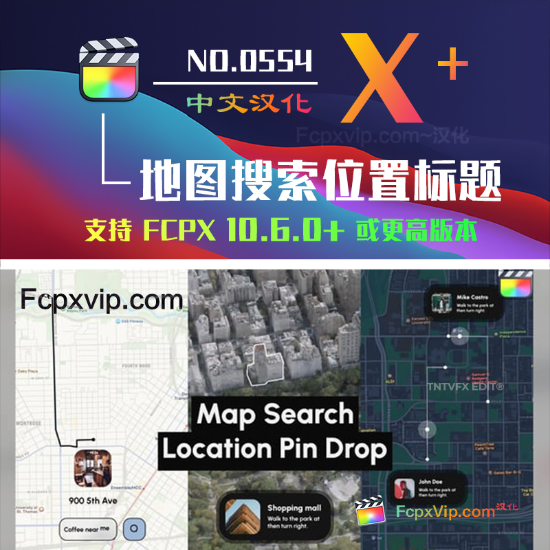 Final Cut Pro中文FCPX插件:6款地图搜索位置图钉放置标题视频模板 Map Search HQ0554