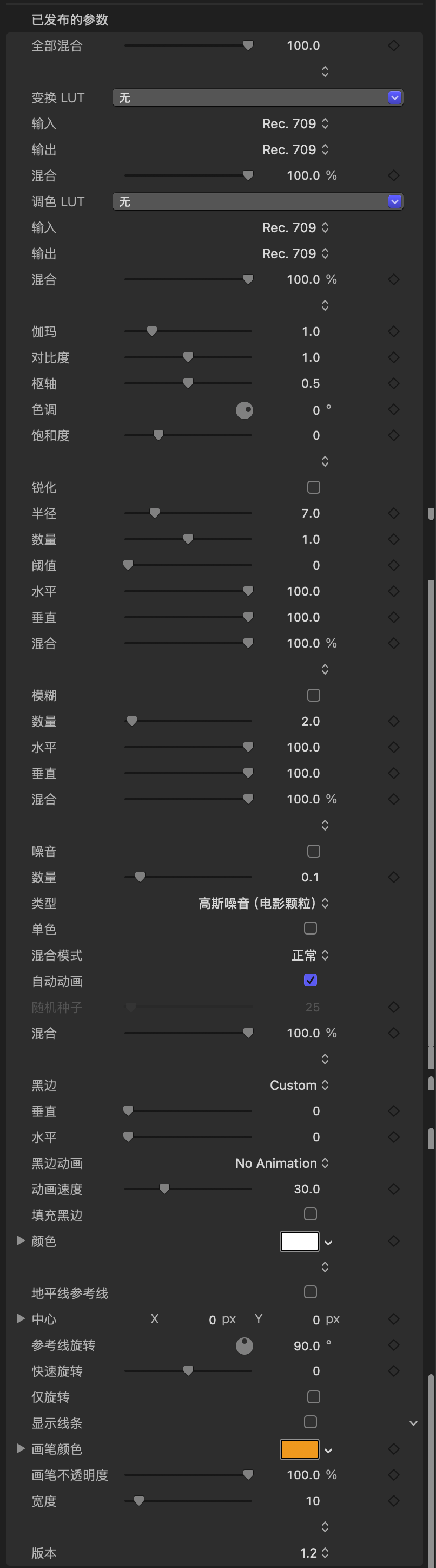 • 伽玛和对比度控制:调整整个时间线的亮度和对比度