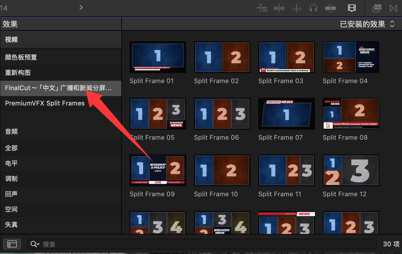 Final Cut Pro中文FCPX插件:广播新闻采访片段报道分屏布局视频更效果 PremiumVFX Split Frames HQ0587