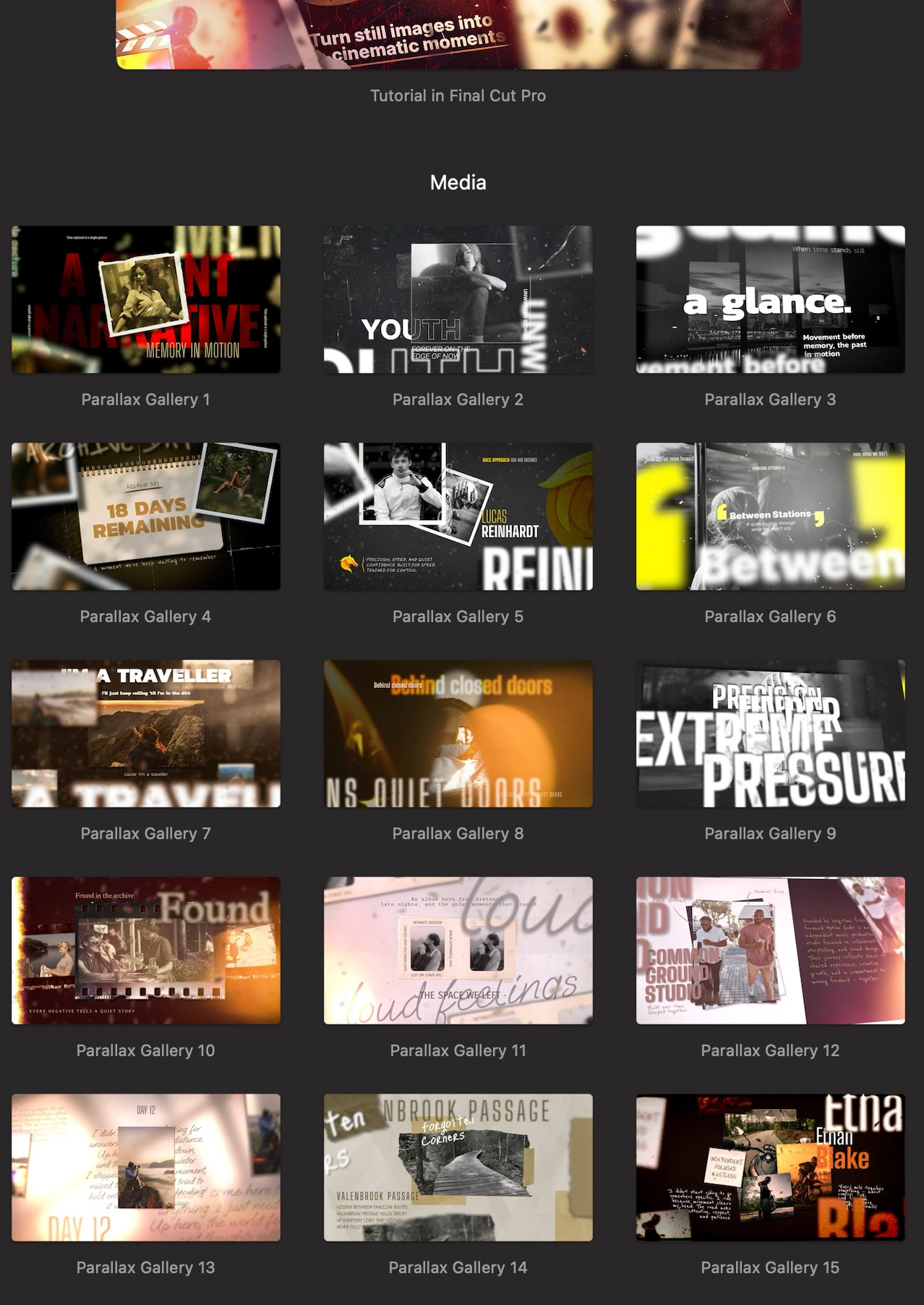 Final Cut Pro中文FCPX插件:30款视差动态电影质感美学纪录片档案影像历史照片展示 Parallax Gallery HQ0592